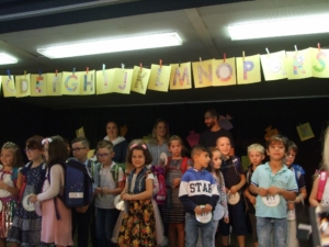 Um den Kindern den Start zu versüßen, haben sich die Lehrer und Schüler der vierten Klassen ordentlich ins Zeug gelegt und mit Liedern und einer Vorstellung des Alphabets auf die Schulzeit eingestimmt.