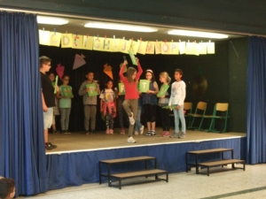 Wir begrüßen unsere neuen Mitschülerinnen und Mitschüler: Die vierten Klassen gestalteten zur Begrüßung unserer neuen ersten Klassen und der neuen Vorschulklassen eine bunte Feier.