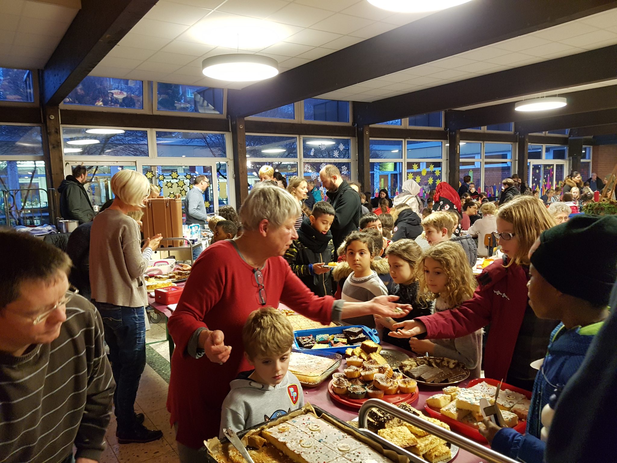 In der Cafeteria gab es Saft, Kaffee, Tee und den köstlichen Kuchen, den die Eltern unserer Kinder immer so liebevoll backen. Nach den anstrengenden Bastelarbeiten konnte sich hier in gemütlicher Runde wieder gestärkt werden.