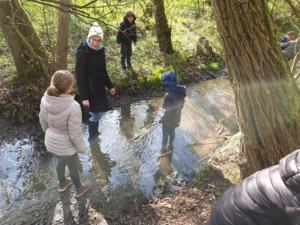 Während der Projektwoche führten sie kleine Experimente zum Thema „Wasser“ durch, bauten Flöße und erkundeten einen Bach, besuchten das Wasserforum Kaltehofe und falteten Origami-Wassertiere.