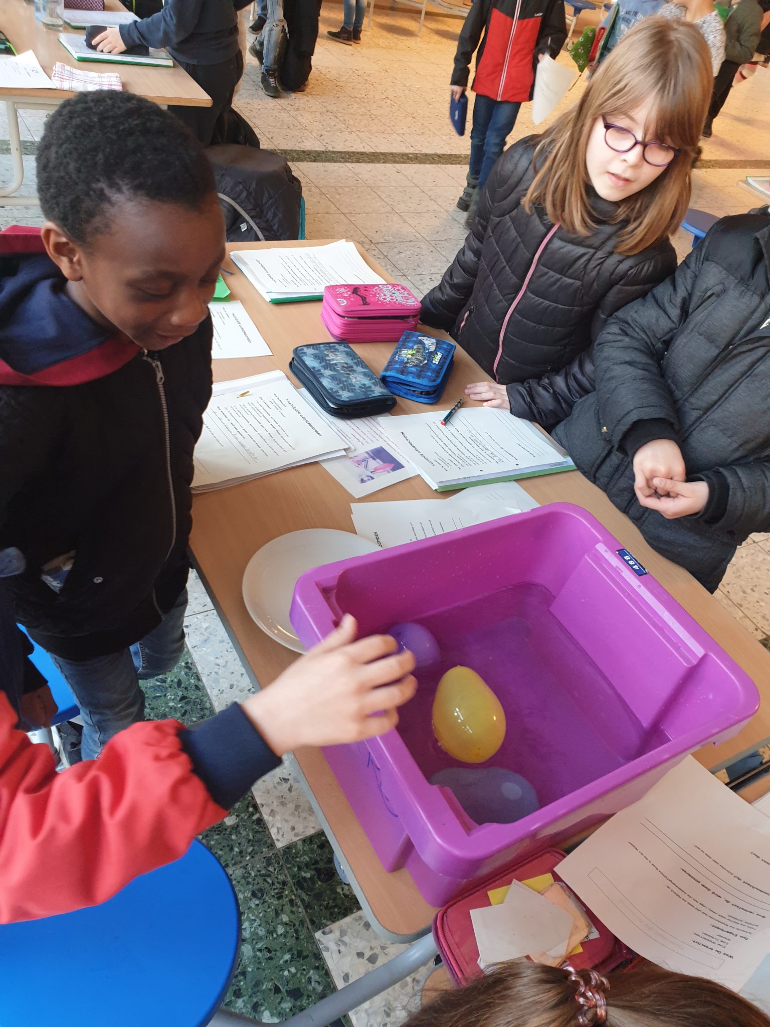 Während der Projektwoche führten sie kleine Experimente zum Thema „Wasser“ durch, bauten Flöße und erkundeten einen Bach, besuchten das Wasserforum Kaltehofe und falteten Origami-Wassertiere.