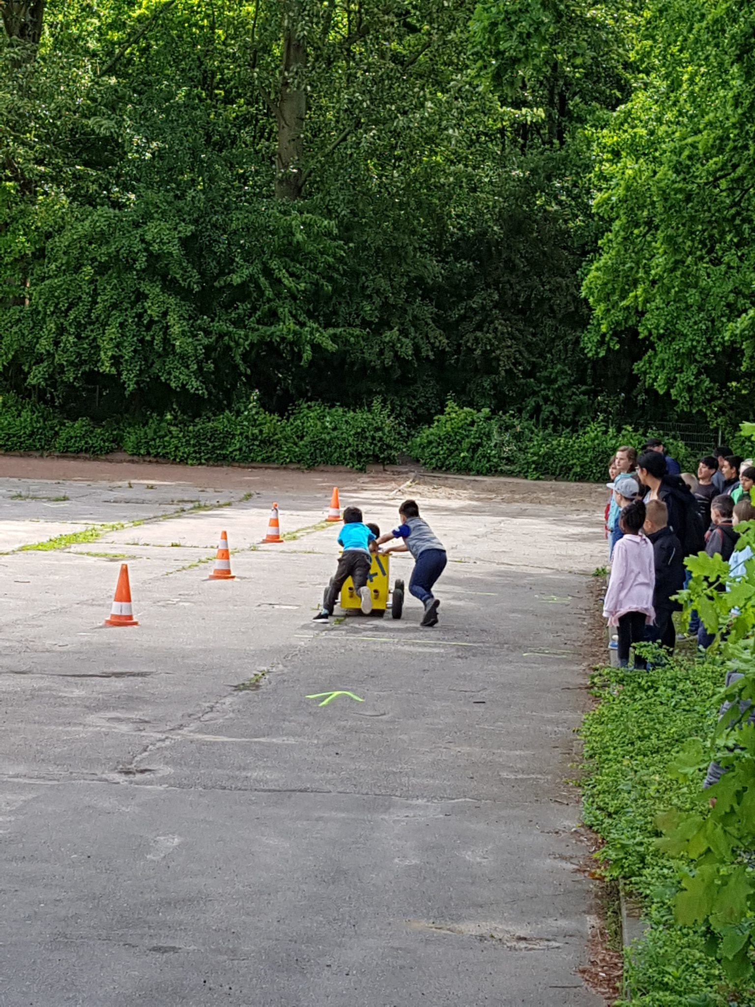 Nach zwei Trainingseinheiten in den letzten Tagen, schwenkten Herr Mordhorst, unser Hausmeister, und Herr Wohlers, unser Stadtteilpolizist, wieder die Start- und Zielfahne des Rennens. Teams aus allen Klassen starteten auf unserem Schulhof. Konzentration, Tempo, Kondition und Teamgeist waren die Fähigkeiten, die die Kinder zu Siegern machten. Und natürlich gehörte auch ein bisschen Glück dazu.