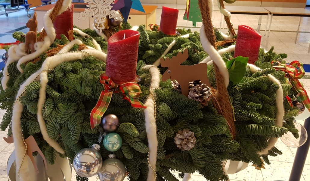 Wir werden es uns jedoch trotzdem in der Pausenhalle um den gemeinsam geschmückten Adventskranz gemütlich machen.Die Stufen treffen sich dazu getrennt voneinander zu unterschiedlichen Zeiten. Frau Klaue-Paschen wird eine weihnachtliche Geschichte vorlesen, es wird weihnachtliche Musik gespielt und einzelne Kinder werden kleine Gedichte vortragen.