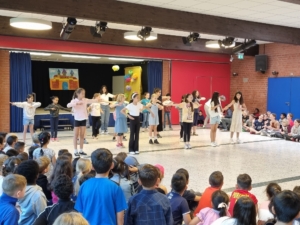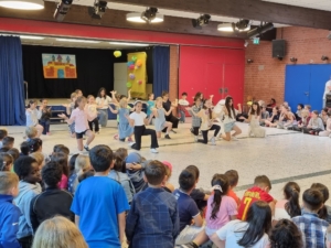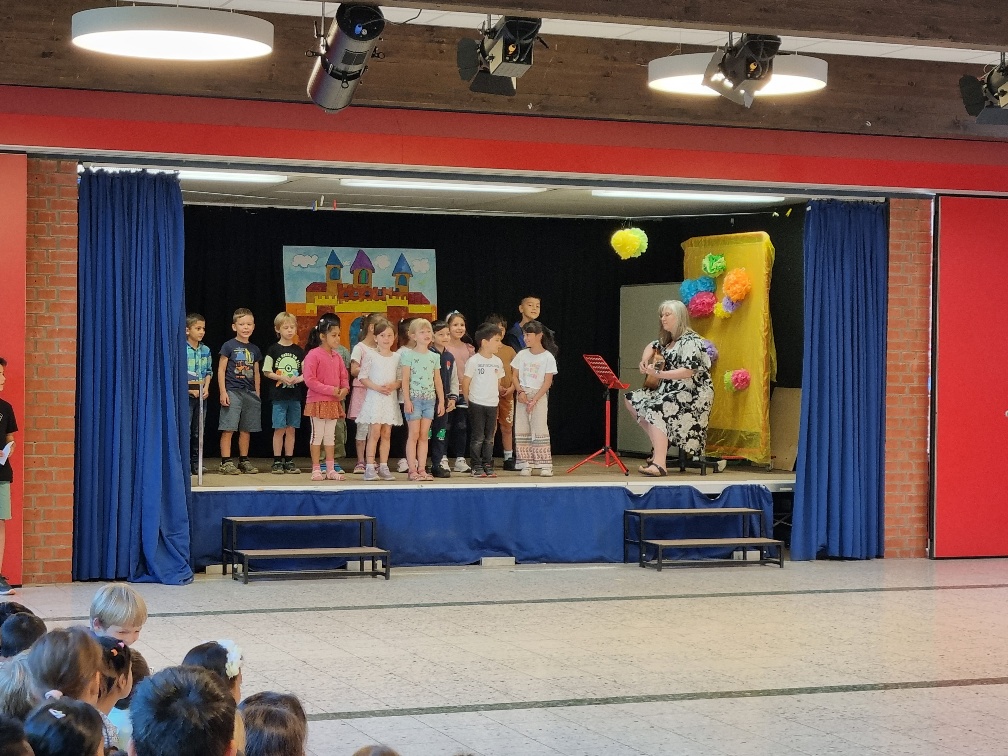 Als Rahmenprogramm präsentierten 4. Klässler eine einstudierte Tanzchoreographie und als Einstimmung sang die Vorschulklasse B mit Frau Jornitz.