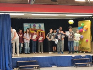 Geehrt wurden am Ende dieses Schuljahres Schülerinnen und Schüler, die an den Projektgruppen zum Thema „Mittelalter“ und „Weltraum“ teilgenommen hatten, sowie aus jeder Klasse die drei fleißigsten Leserinnen und Leser beim Leseprogramm „Antolin“.