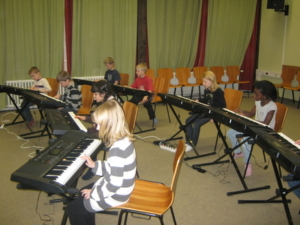 Der Name ist Programm: Jedem Kind an unserer Schule soll die Möglichkeit offen stehen, ein Musikinstrument zu erlernen, das es sich selbst aussucht. Im Mittelpunkt steht das gemeinsame Musizieren der Kinder – von der ersten bis zur vierten Klasse. Derzeit bieten wir für unsere Schülerinnen und Schüler Gitarre, Keyboard, Querflöte und Trommel an.